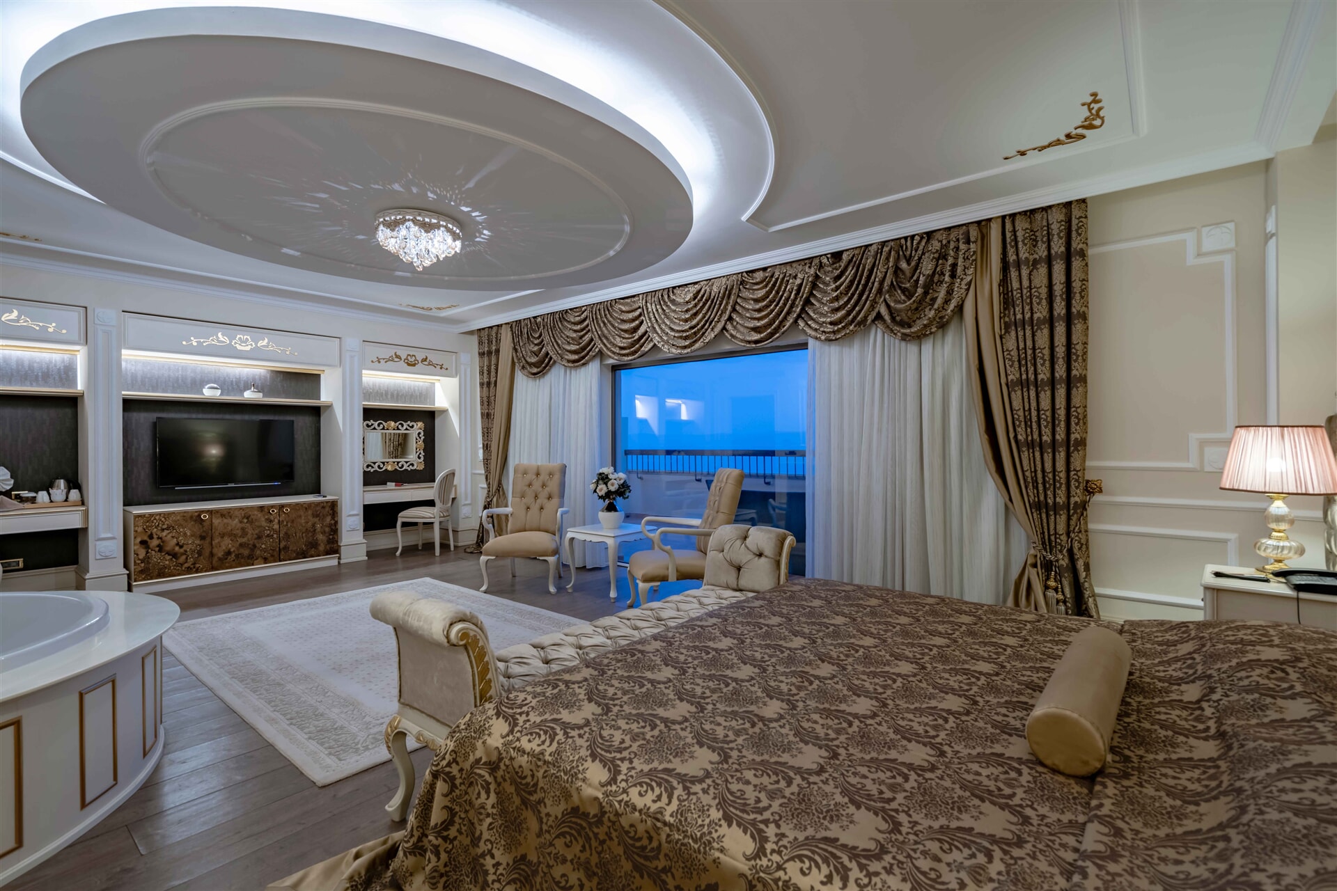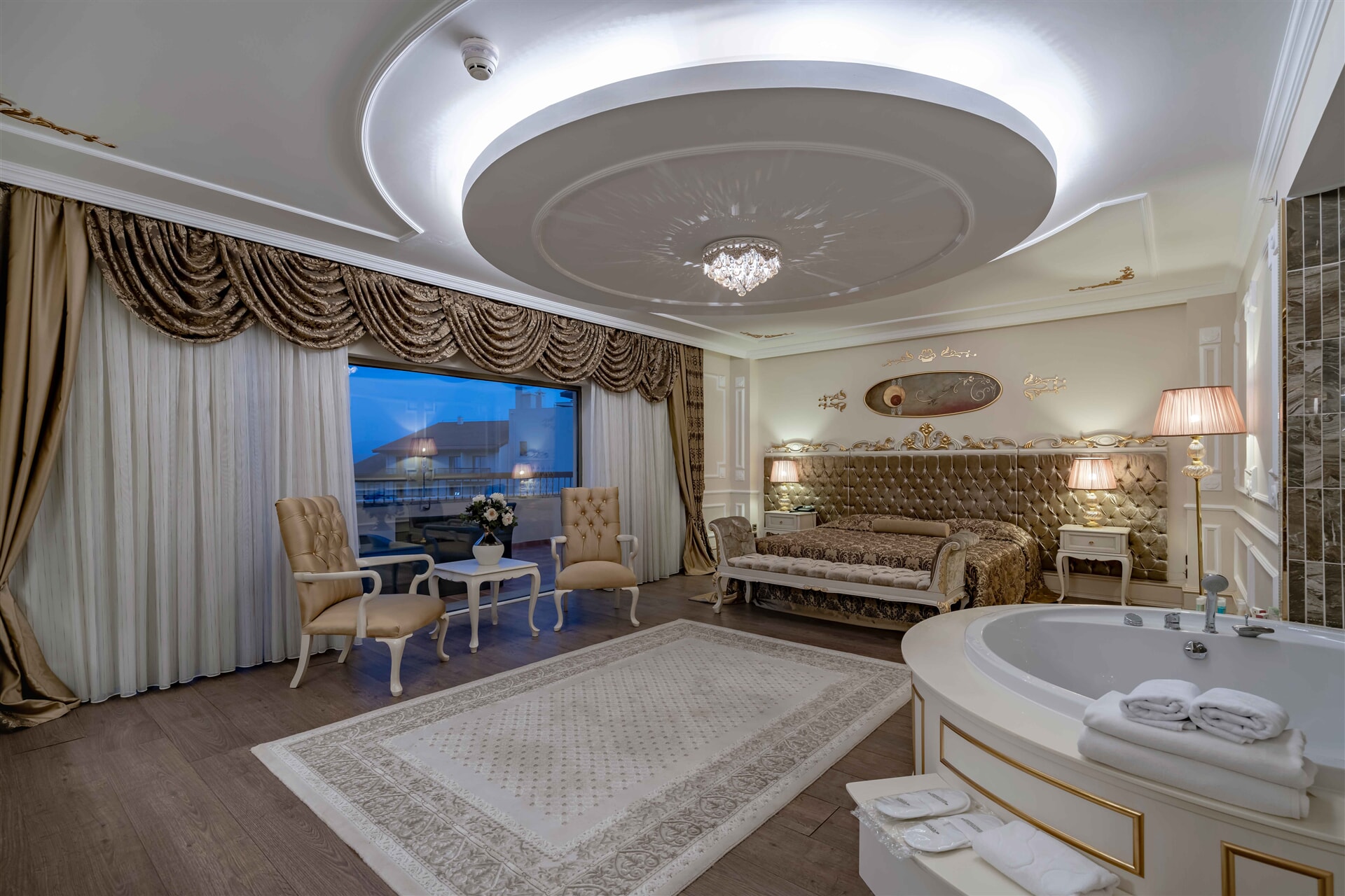 Ana Bina 67 m² - 69 m² Min 2 - Max 2 Odalar özel ve zevkli dekore edilmiş olup 1 king size yatak, oturma grubu ve jakuziden oluşmaktadır. Bu odalar farklı dizayn edilmiş bir katta bulunmakta olup sadece Executive misafirlerinin kullanabileceği özel asansörleri bulunmaktadır. Tüm odalarda uydu yayınlı IP LCD TV (55”), direkt hatlı telefon, Laminant parke, geniş banyo, fonksiyonel Duş –WC banyoda telefon, saç kurutma makinesi ve oda da Jakuzi, mini bar, kettle & sıcak set up, ayarlanabilir dijital merkezi klima, elektronik kasa mevcuttur. Tüm odaların geniş terası bulunmakta olup deniz manzaralıdır. Executive oda misafirlerine sunulan özel hizmetler; • Giriş günü odaya meyve sepeti • Turndown Service, • İnternet bağlantısı (ücretsiz)
